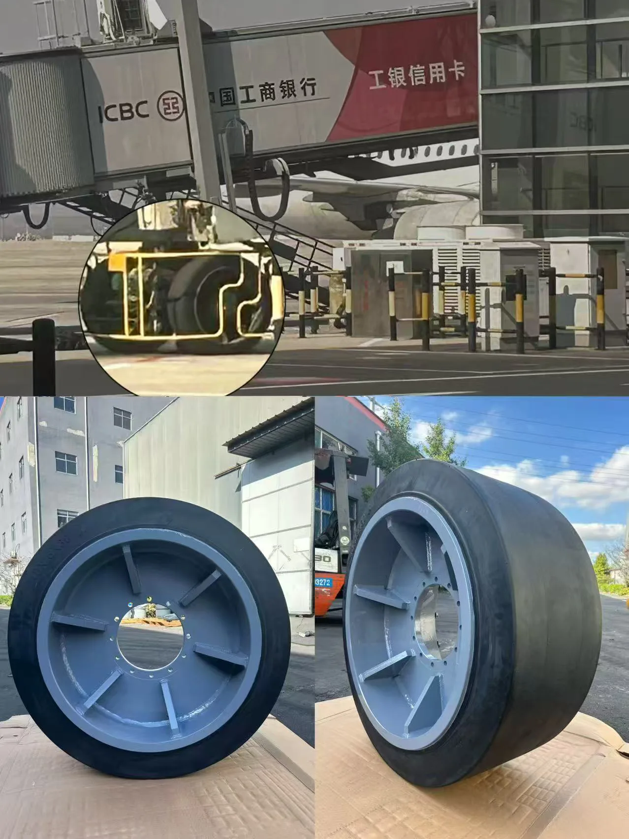 यात्रु बोर्डिङ ब्रिजमा 40x16x30 टायरहरू प्रयोग गरियो