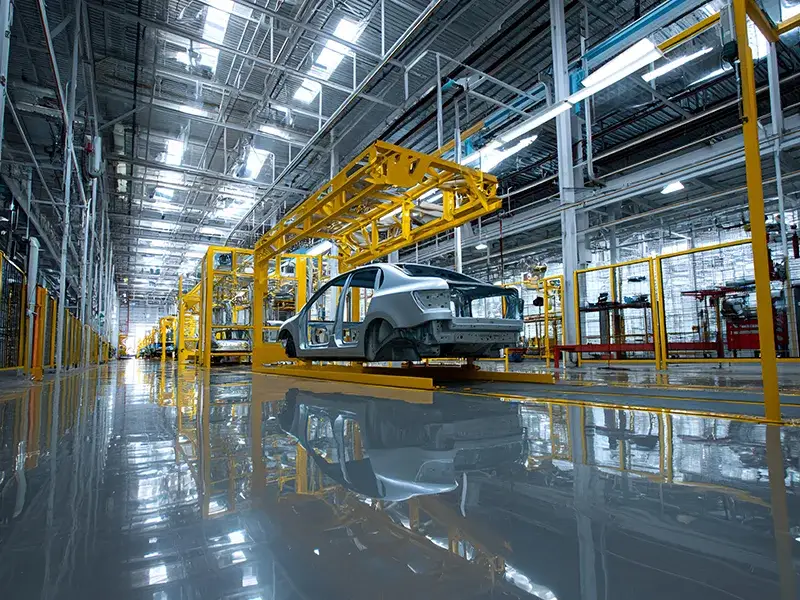 अटोमोबाइल उत्पादन:म्यानुअल ह्यान्डलिंग कम गर्न सम्मेलन लाइनमा यातायात अंगहरू।