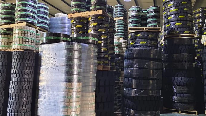 फोर्कलिफ्ट टायरमा थिच्नुहोस्